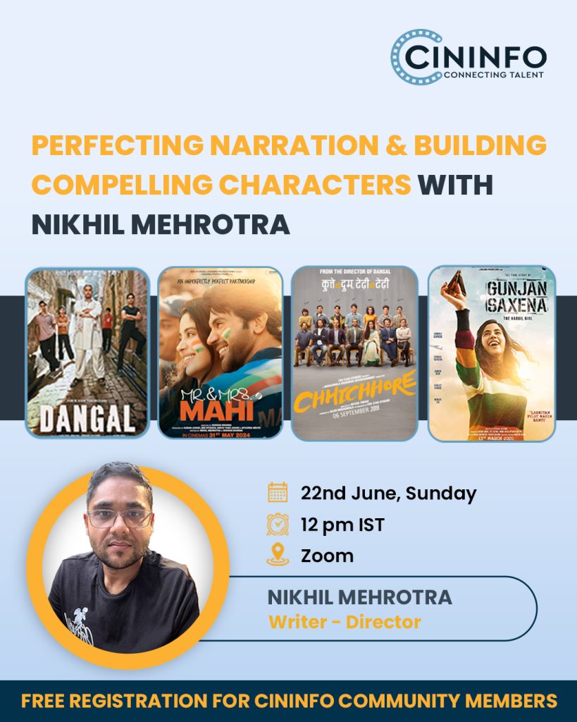 🎯Special Highlight: Nikhil will also be sharing details about his upcoming 4-day online screenwriting workshop—a rare opportunity to deep dive into the craft with him.