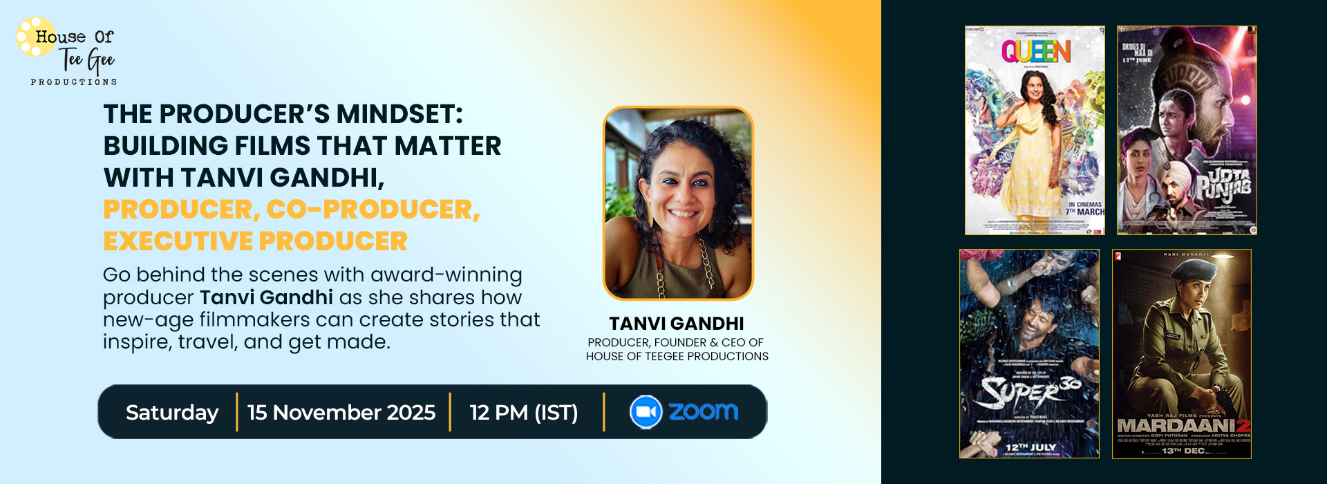 Go behind the scenes with award-winning producer Tanvi Gandhi as she breaks down the art and business of producing films that truly make a difference. Drawing from her experience on some of India’s most acclaimed films, Tanvi will guide participants on how to identify strong stories, collaborate effectively, and build projects that inspire audiences and travel across borders.